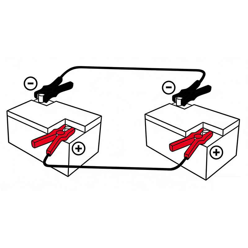 • En konec črne premostitvene objemke pritrdite na negativni (–) pol akumulatorja delovnega vozila.