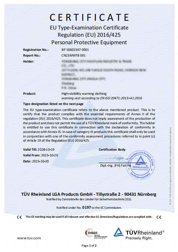 A2: Vsi varnostni jopiči z logotipom po meri so opravili certificirane teste EN 20471 in so popolnoma kvalificirani za uvoz v EU za varnost v cestnem prometu in naročila inženiringa v razsutem stanju.