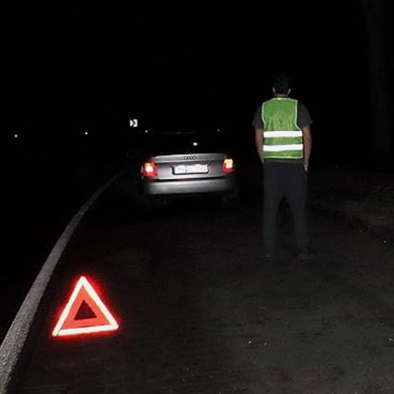 ● 360° vsesmerna vidljivost:Vrhunski odsevni trakovi dajejo močan sijaj na soncu ali pri šibki svetlobi in zagotavljajo varnost za poprodajne avtomobilske reševalne ekipe.